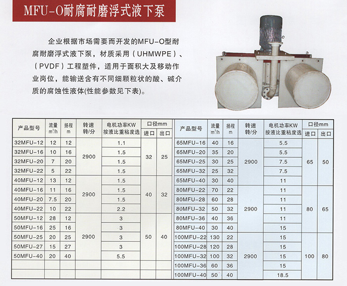 MFU-O型耐腐耐磨浮式液下泵